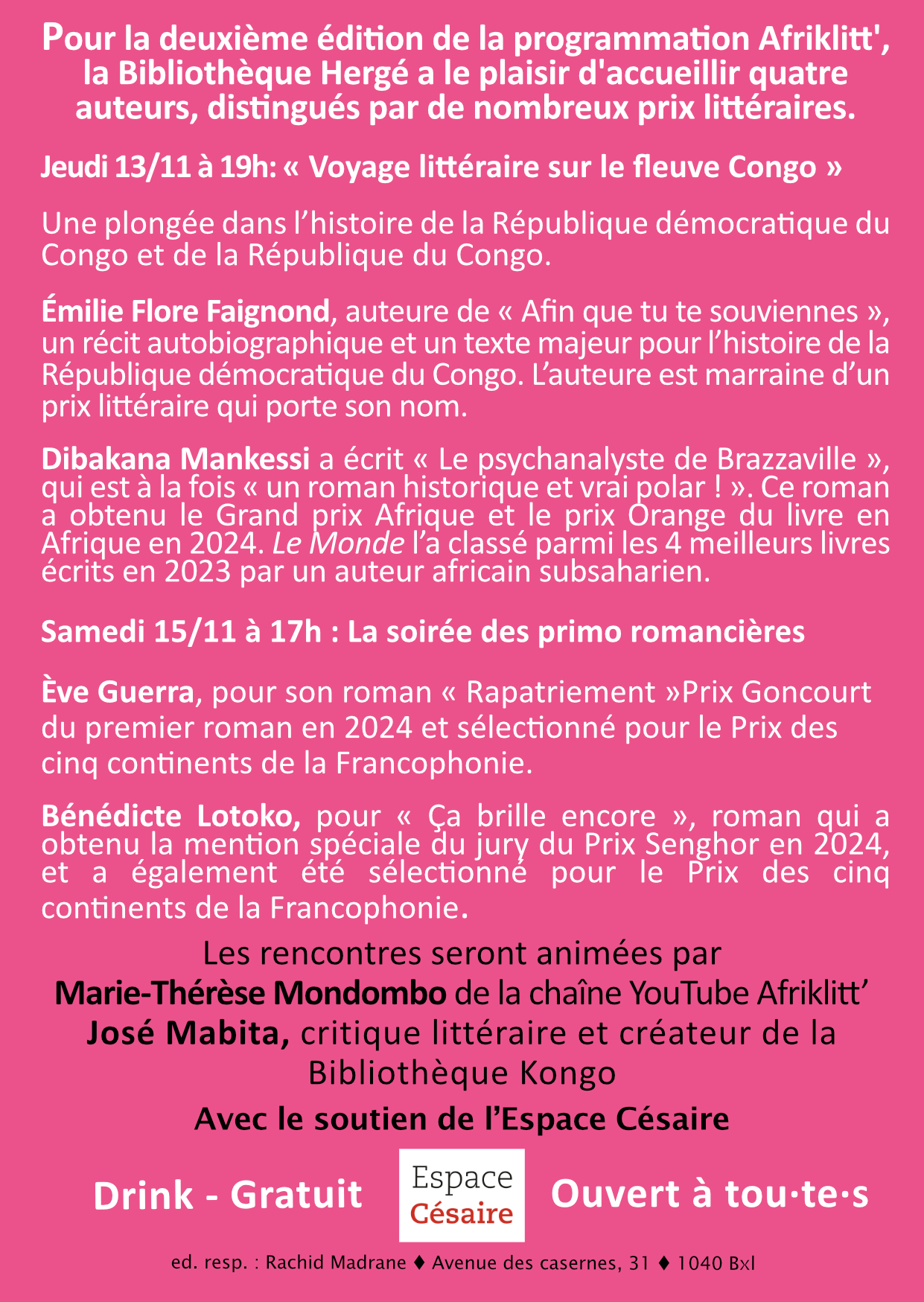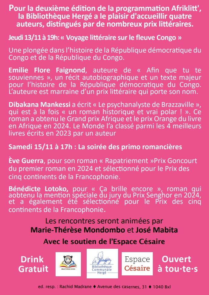 Afriklitt’ 2025 : rencontres autour des littératures africaines – Jeudi 13/11 à 19h et samedi 15/11 à 17h